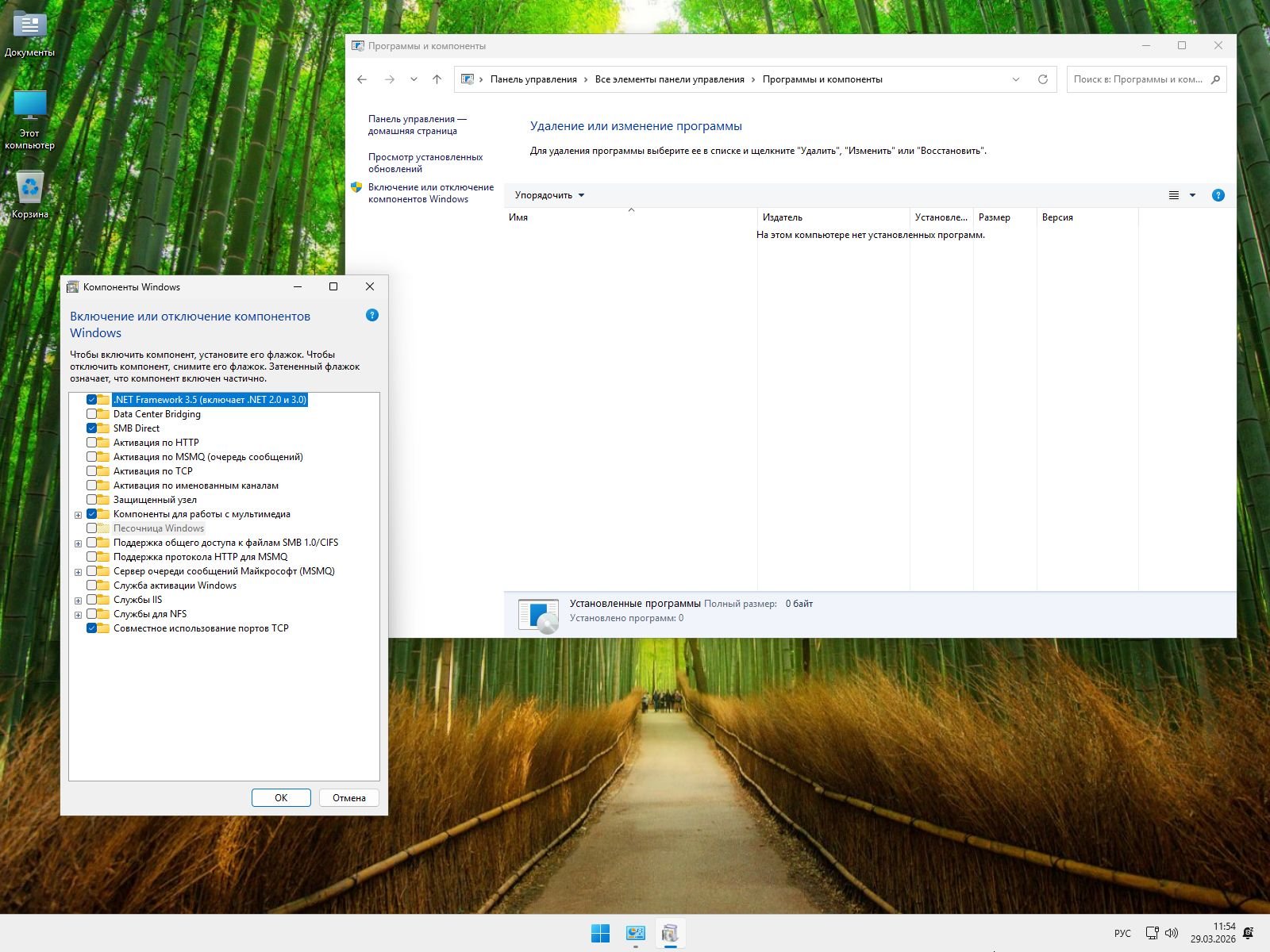 • Нет никаких приложений, включая Xbox, как и Microsoft Store. Причем, в отличие от многих других сборок, Виндовс 11 Pro 25H2 64 бит Lite by Bumer не позволяет вернуть Магазин. Система рассчитана на тех, кто планирует использовать обычные программы.